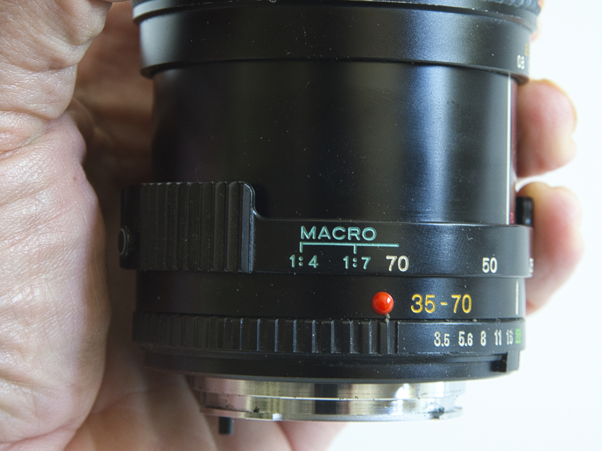 Monissa arvosteluissa kehuttu zoom, optisesti sama kuin Leican versio (Vario Elmar-R 35-70/3.5).